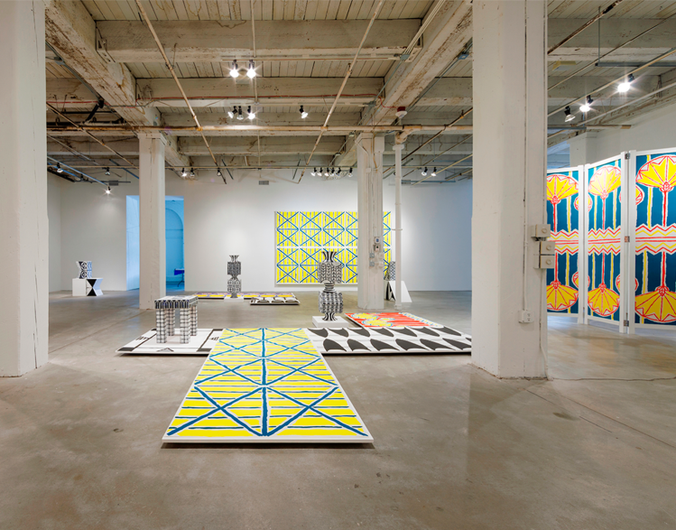 “Minutes of Sand” is from Elisabeth Kley a New York-based Artist, this solo exhibition has Fabrics, ceramics, and paintings full of patterns, ornamentations, and striking colors. She started off her carrier as a writer and then moved on to other art media.