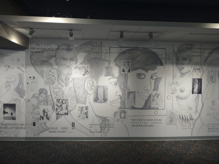 The walls of the Osborne Family Gallery inside the Criss Library at UNO, display the skills of those who are suffering oppression but still create beauty.