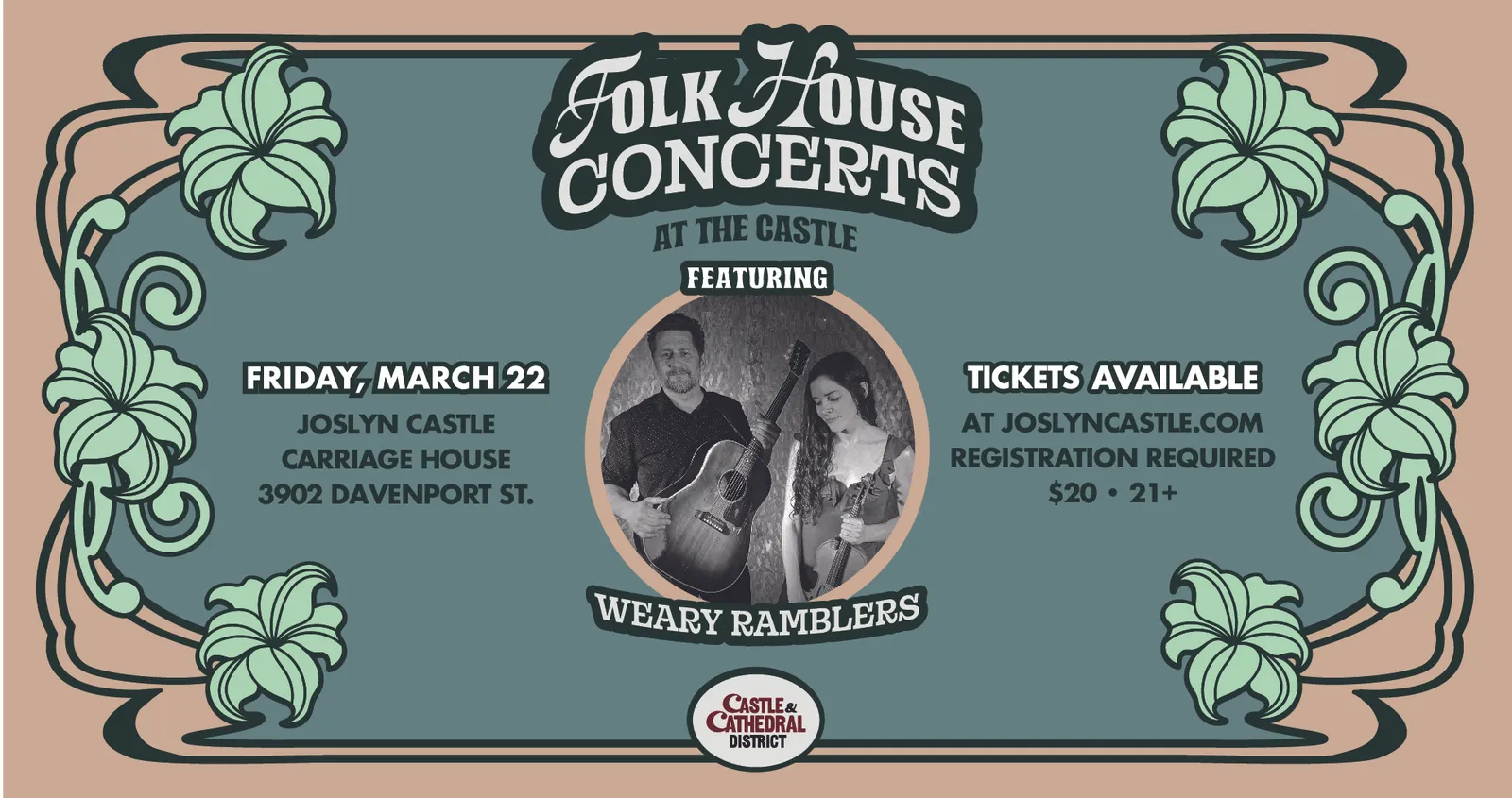 The Castle & Cathedral District (C&CD) are excited to announce a new live music series hosted at the Joslyn Castle! FolkHouse Concerts at the Castle features the best in local grassroots, folk, and Americana bands in an intimate venue: the Castle’s historic Carriage House.