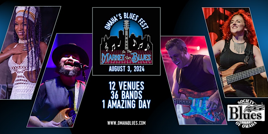In The Market For Blues, Omaha’s Blues Fest is an all-day music festival featuring 12+ hours of music by 35+ bands at 10+ venues in Omaha’s Old Market, Capitol District, and Downtown Omaha on Saturday, Aug. 3, 2024. See OmahaBlues.com for a full schedule of events.