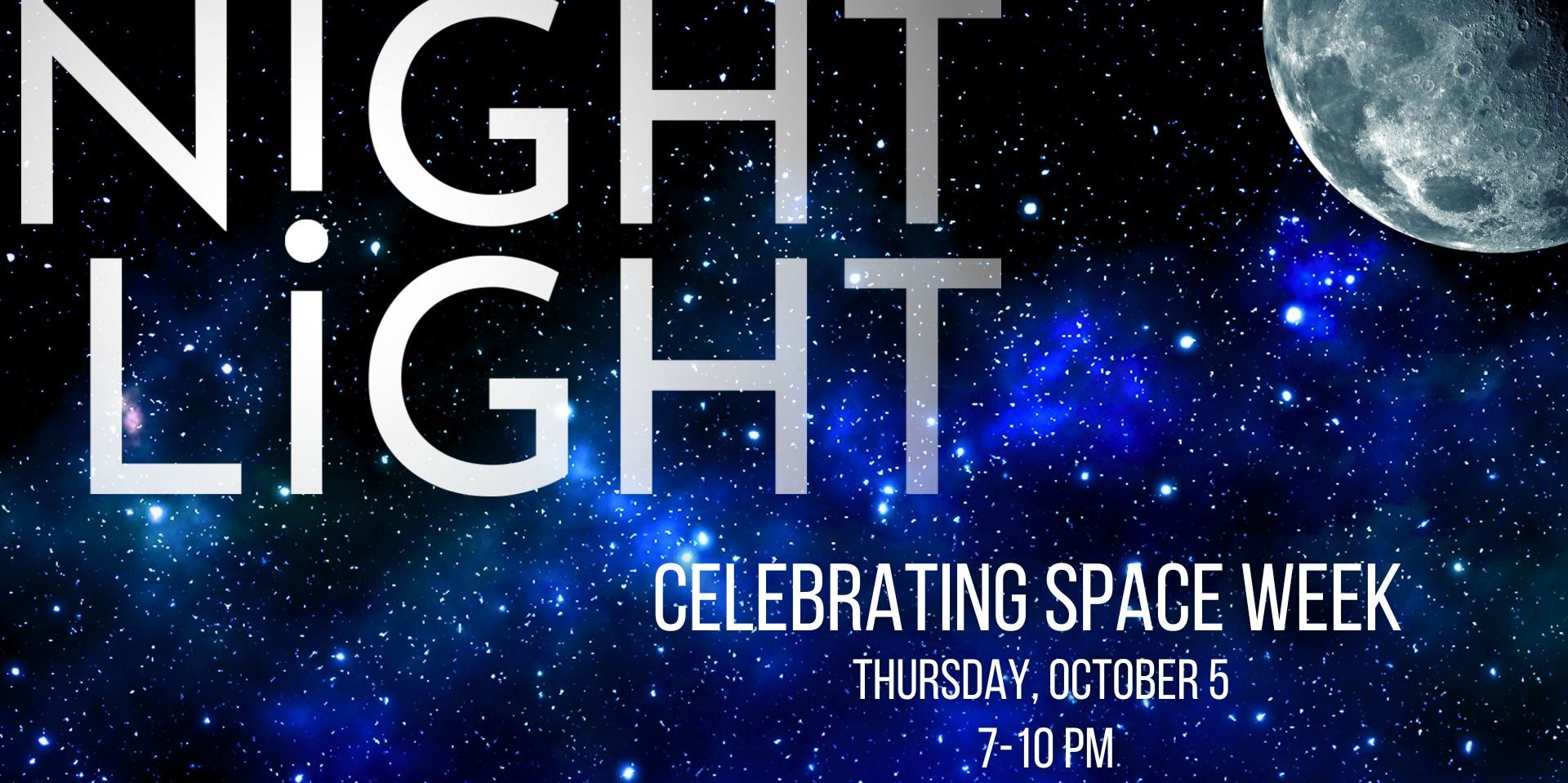 Embark on a cosmic journey at Night Light: Celebrating Space Week on Thursday, October 5th, from 7-10 PM! Explore the cosmos with the Luminarium’s own Program Manager, Anthony Galdamez, a NASA Solar System Ambassador. Prepare for a night filled with space exploration activities: including telescope dissections, bone density, and balance experiments. Enjoy space-themed drinks all while grooving to the music by special guest, Kethro!