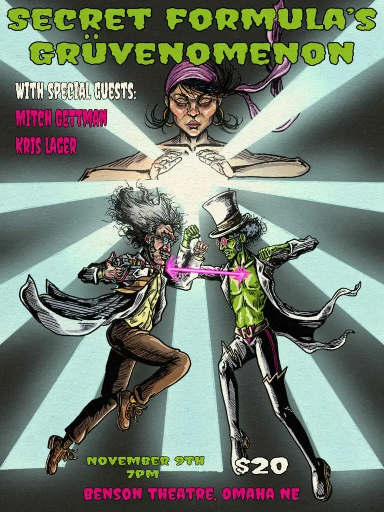 Join us on Saturday, November 9th for Secret Formula’s debut at the Benson Theatre. Alongside special guests, Mitch Gettman & Kris Lager, the band will embark on the foretold odyssey of the modern age genius, Dr. Grüvenmeister. Tickets are on sale now for this ONE NIGHT ONLY special event.