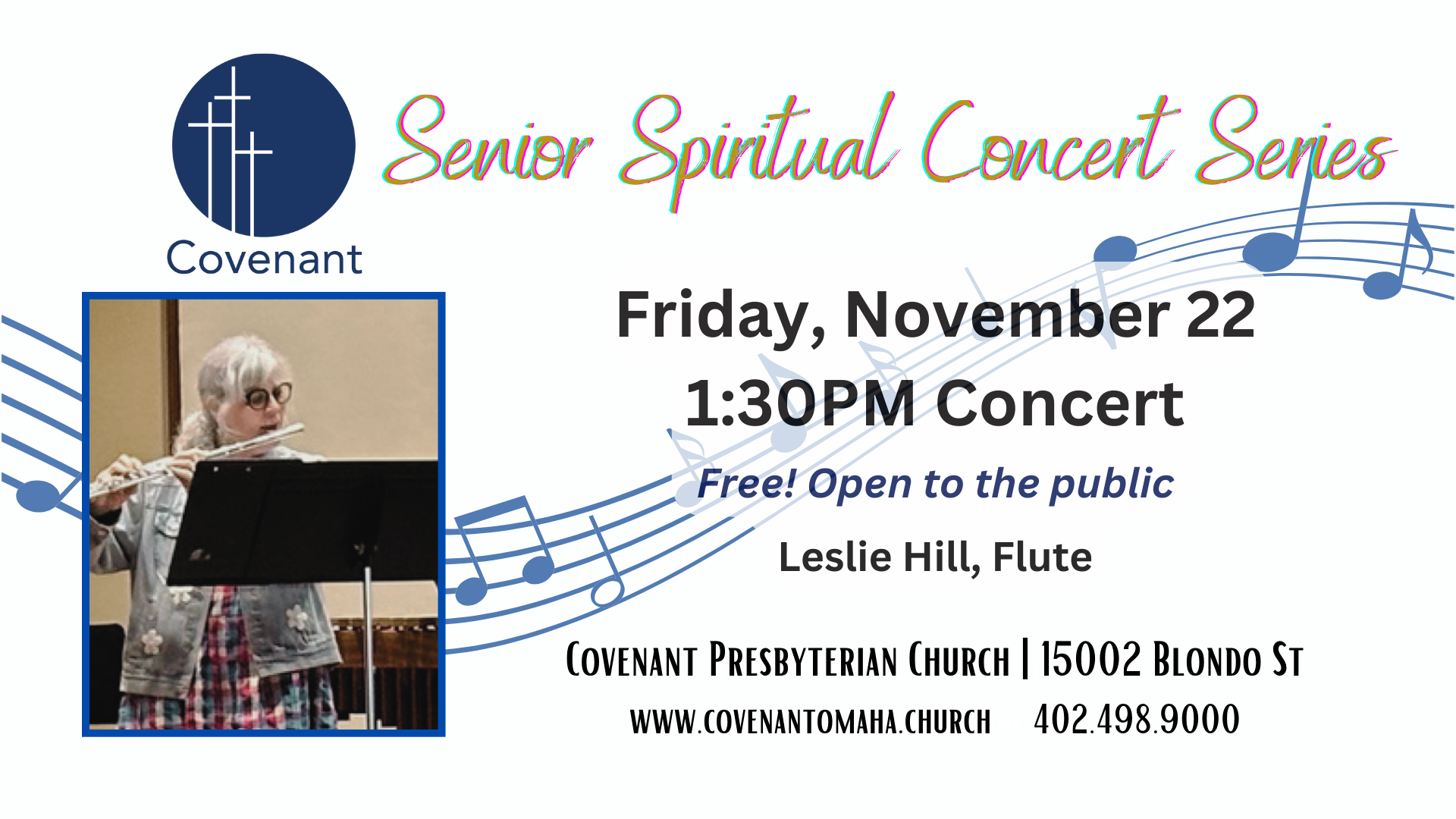 | Add this special concert to your November calendar! The next installment of our Senior Concert Series will feature Leslie Hill on flute. Enjoy a spiritual concert of traditional hymns and classical flute music. The concert is FREE and open to all. | |