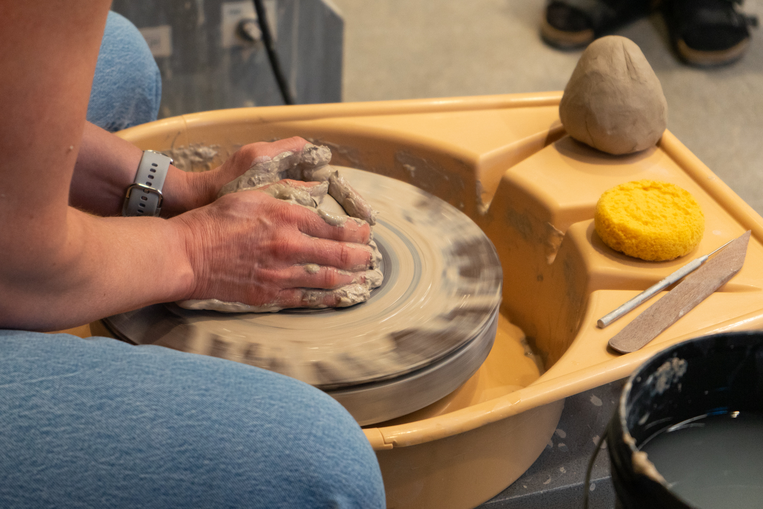 Learn the basics of ceramic wheel throwing! Each participant will be provided clay and will learn the basics of centering, and creating a cylinder!