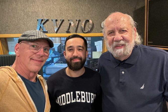 Jeff Koterba and Trilety Wade in the KVNO studio.