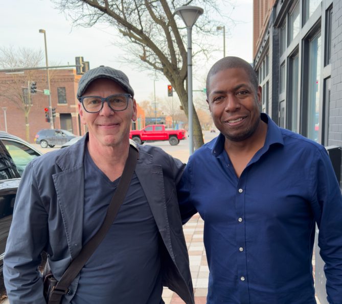 Jeff Koterba with Dana Murray, accomplished musician and director of North Omaha Music and Arts.