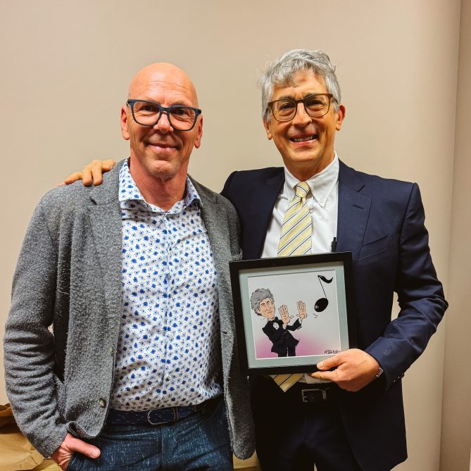 Academy Award-winning director Alexander Payne and the Omaha Symphony joined forces for an evening exploring the power of film music. KVNO’s Jeff Koterba had the honor of presenting Alexander Payne with his very own caricature.